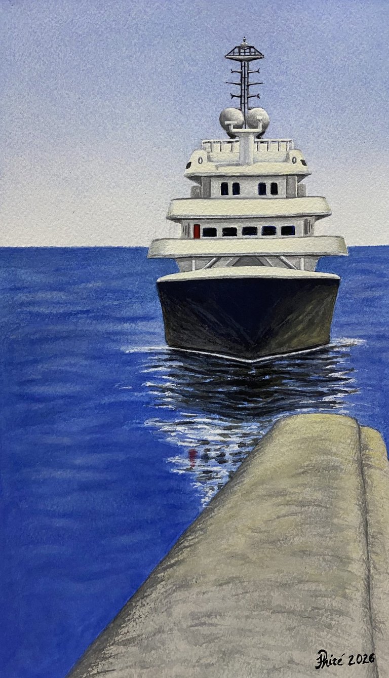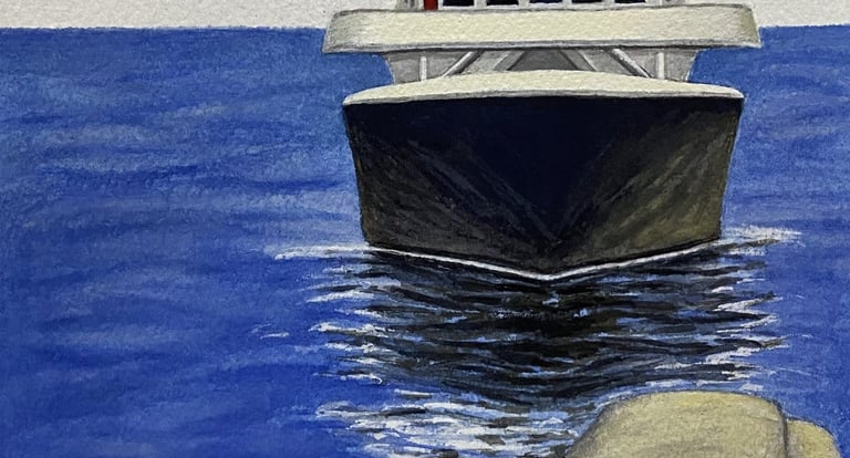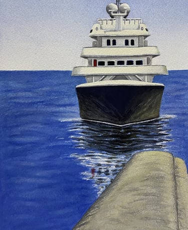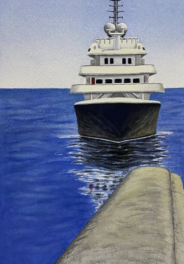 Inspired by the Octopus superyacht at Scapa Pier, the stylised composition is held in stillness.