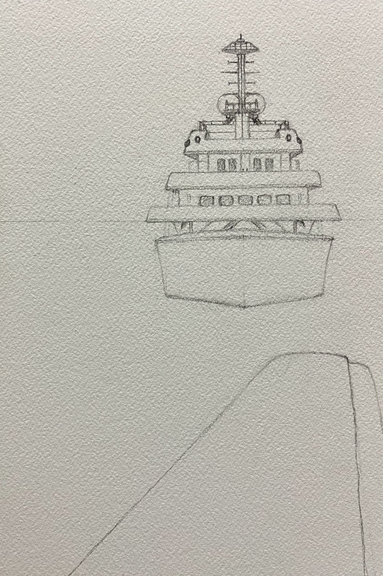 The work began with a measured graphite underdrawing to establish proportion, structure, and spatial alignment.