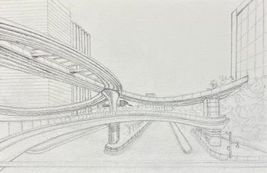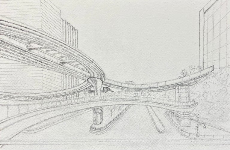 Inspired by a pedestrian bridge shaped by the ribbons of traditional Hangzhou silk, the work considers choices, pathways, and movement held within order.