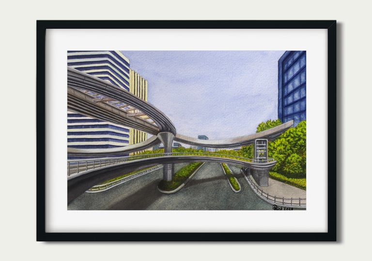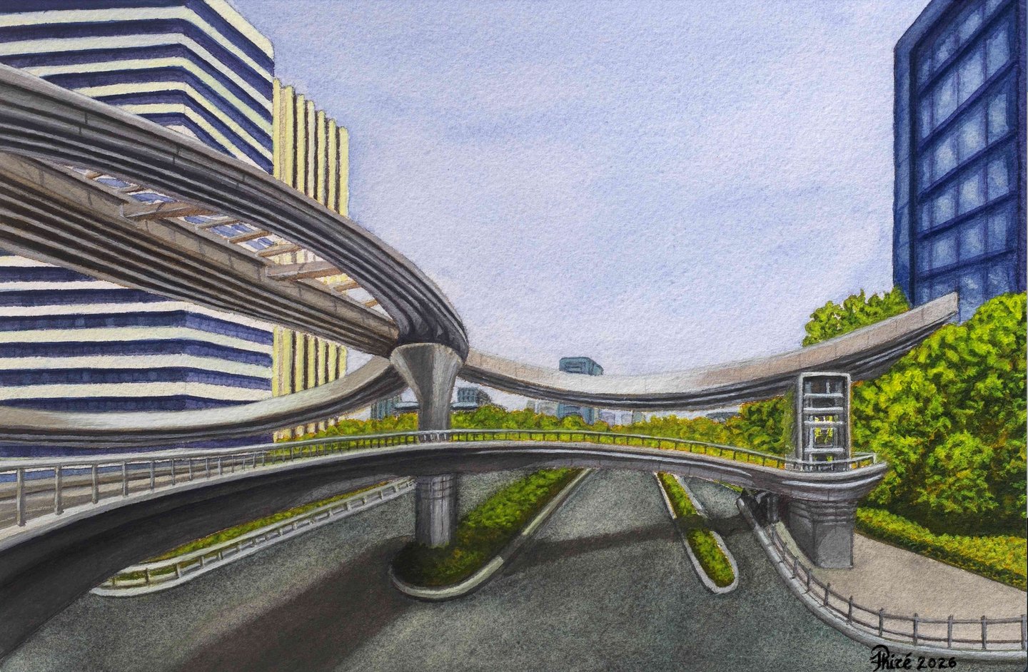 Inspired by the Binkang Road and Jucai Road pedestrian bridge in Hangzhou.