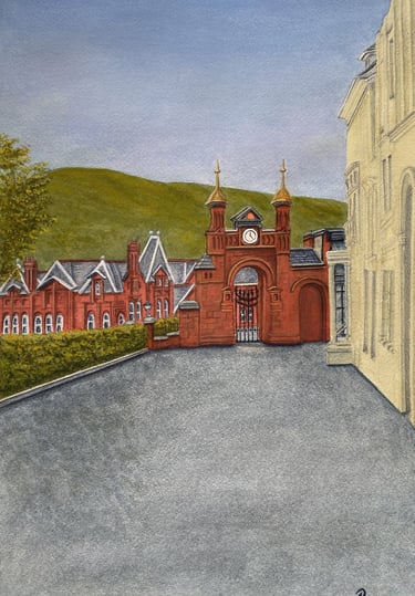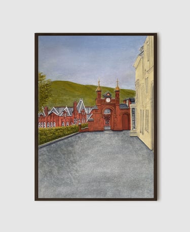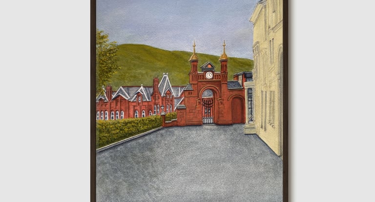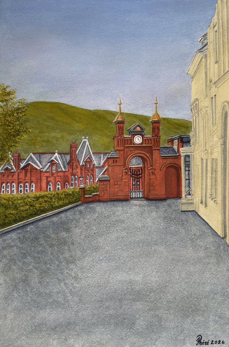 Inspired by an old railway station in Isle of Man, the composition has been stylised to convey stillness.